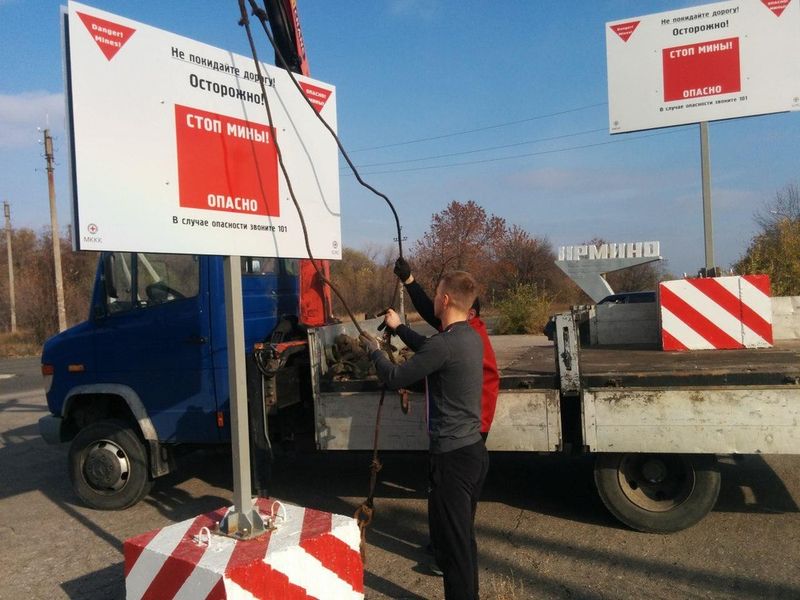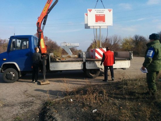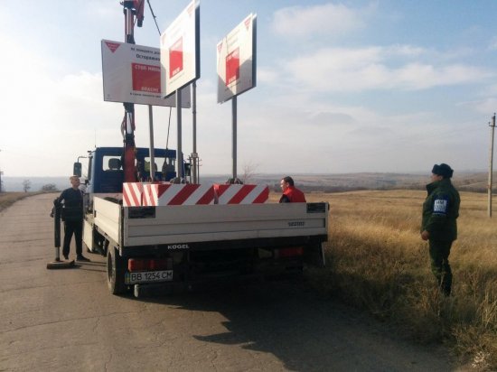 Отмечается, что щиты были установлены в районе населенных пунктов Южная Ломоватка, Алмазная, Ирмино, Первомайск, Кировск, Донецкий, Фрунзе, Смелое, Славяносербск.