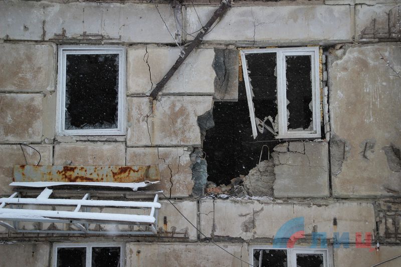 В результате обстрела посёлка Донецкий повреждён многоквартирный жилой дом, который недавно был восстановлен и предназначался для жителей населённого пункта, у которых разрушено жильё. В этот дом люди должны были заселиться до конца 2018 года.