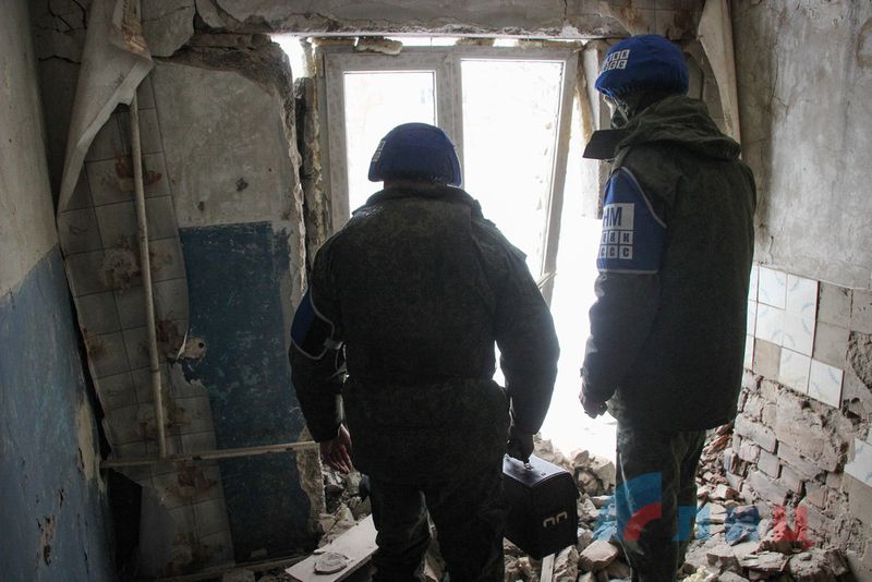 Подполковник проинформировал, что «для определения типа вооружения, оценки последствий обстрела и нанесенного ущерба на месте работают представители Совместного центра по контролю и координации режима прекращения огня».