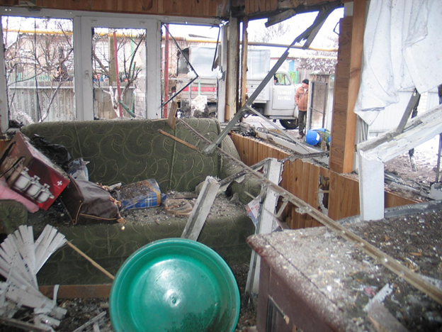 В результате обстрела ранения различной степени тяжести получил мирный житель города, разрушены жилые домовладения по адресам: Кировск, улица Толстого, 23, Толстого, 25, Железнодорожная, 3.